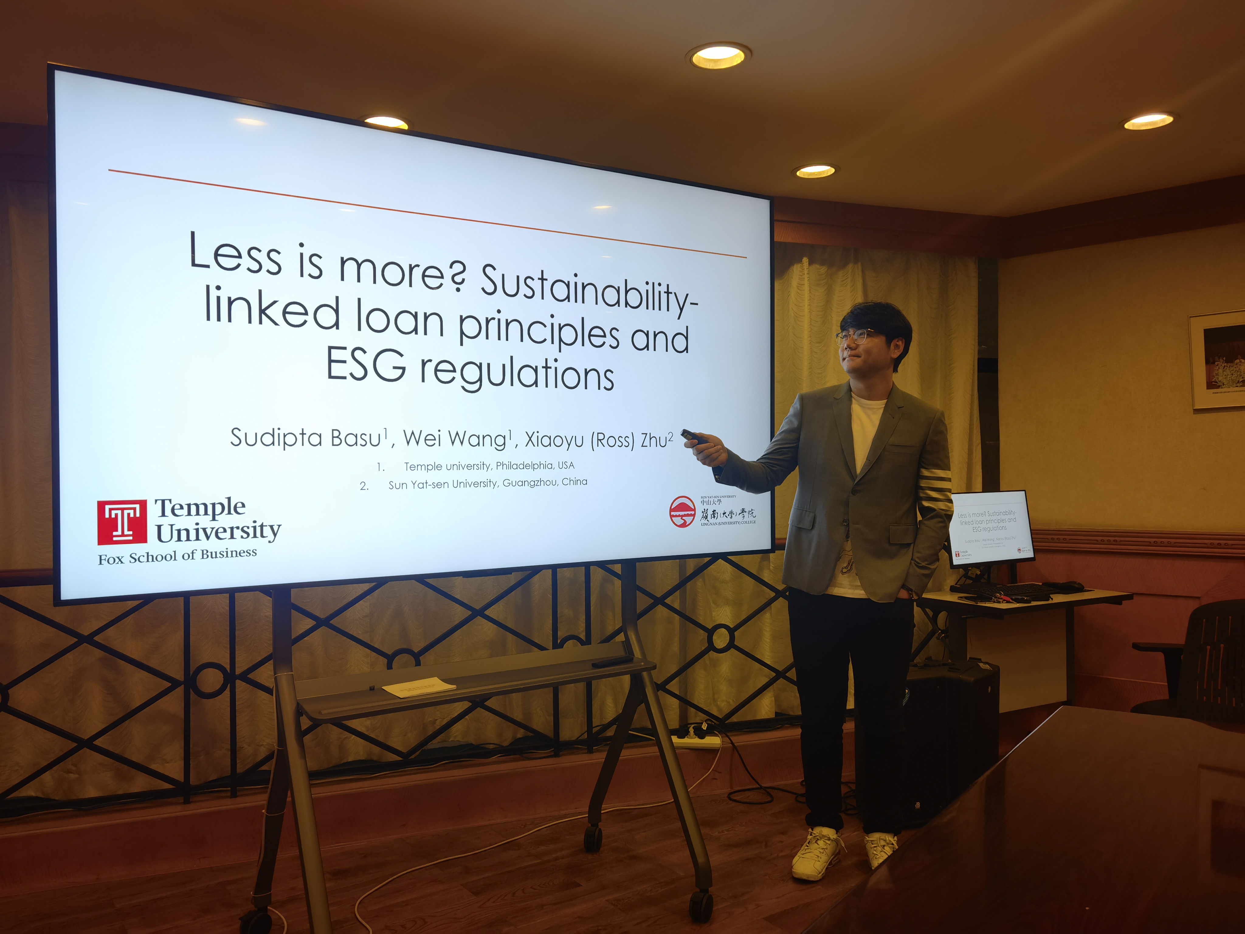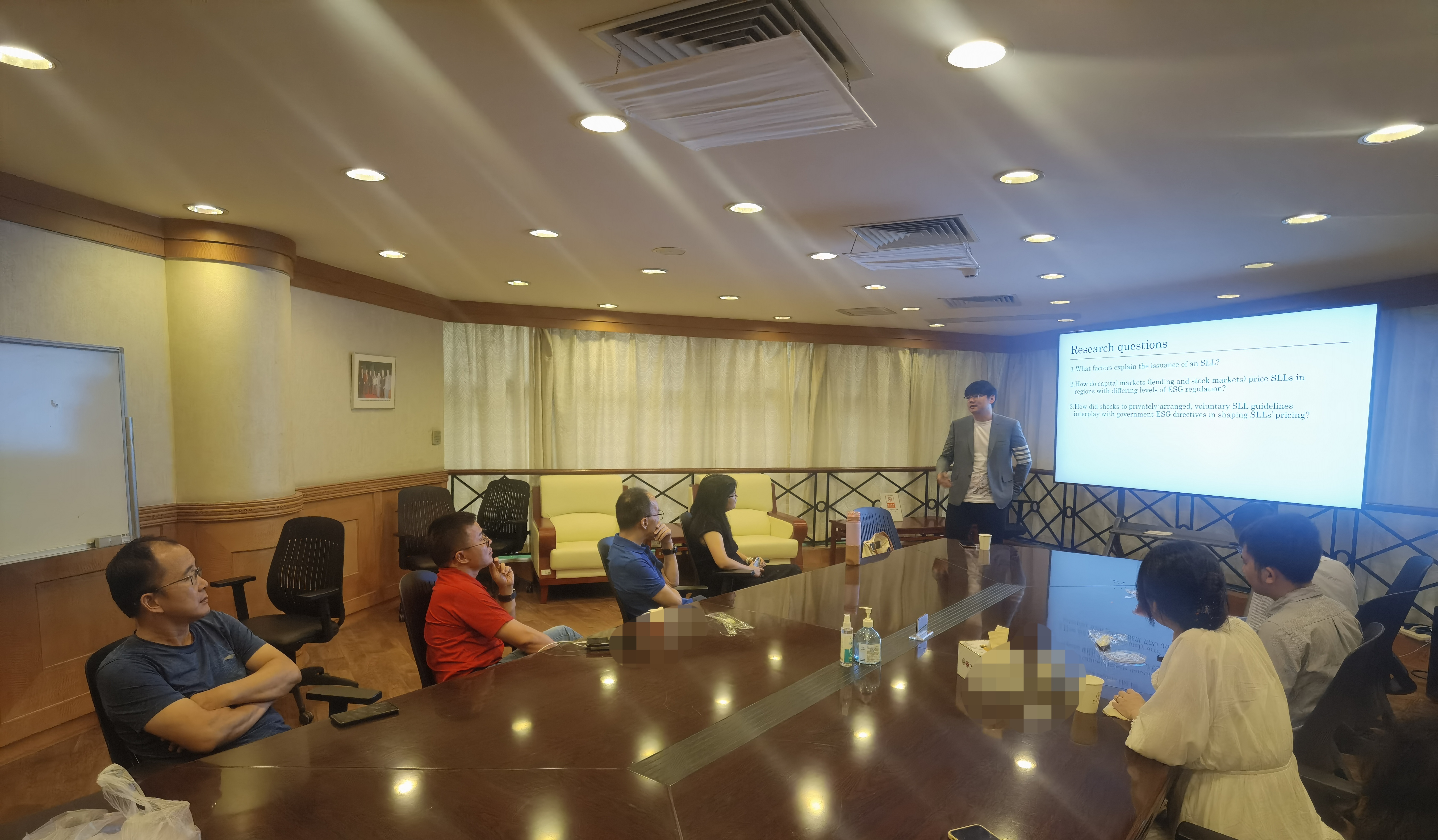 2022年9月30日中午,岭南学院公司金融教研室在岭南堂一楼林植宣会议室举行了一场论文报告分享会。教研室朱效禹助理教授作为论文汇报人,为大家带来了主题为:“大道至简:可持续发展链接贷款准则和绿色金融管制”的论文分享,分享会由教研室主任罗党论教授主持。