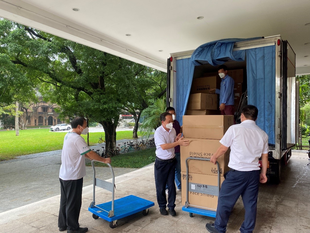 11月21日,在得知母校急需电动运输车为师生配送生活物资后,岭南学院EDP同学会、深圳分会、东莞分会迅速行动起来,捐赠8台电动三轮车,60箱凉茶饮料,并于当晚深夜送达校园。电动车的投入使用,有效提升了校内生活保供物资的派送效率,支持母校防疫工作。