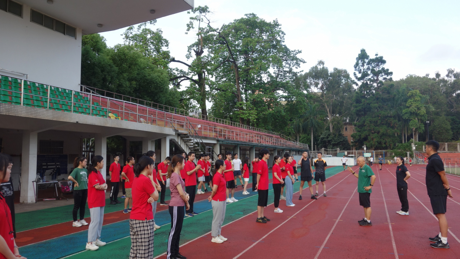 经济学拔尖班班主任李善民院长带领全体经济学拔尖班同学开展跑步锻炼活动