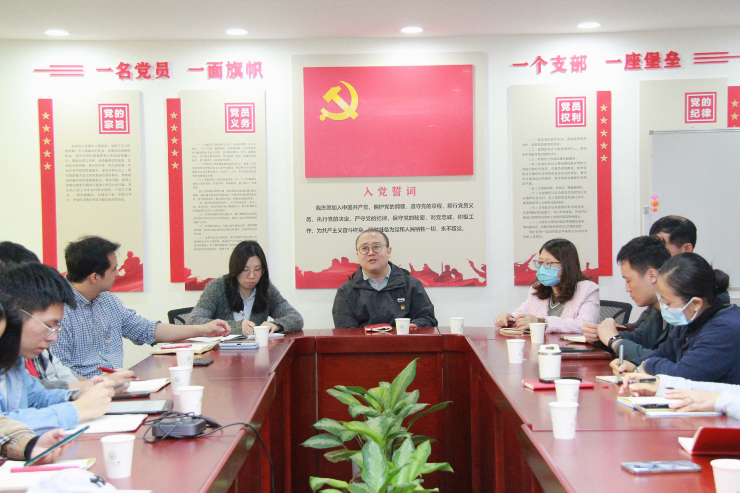 根据前期安排,党支部组织全体党员原原本本、逐字逐句自学了党的二十大报告和党章,在本次会议上党支部书记张硕辰同志组织大家再次讨论了有关要点,进一步理解二十大报告中有关“一个中心任务”、“两步走”、“三个务必”、“四个自信”、“五个必由之路”、“六个坚持”等内容,认真学习了中国式现代化的本质要求,让党的二十大精神落细落实到每位同志本职工作的全过程。在党章学习中,组织广大党员一同重温了党的性质、党的根本宗旨、党的最高理想和最终目标、党的指导思想等内容,要求全体党员要遵守党章、贯彻党章、维护党章,做一名合格的共产党员。