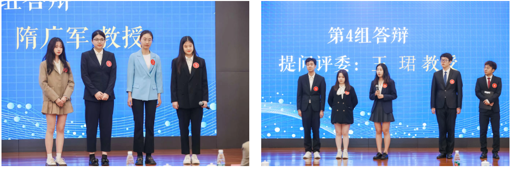 在各组展示完毕后的答辩环节,评委嘉宾针对研究的选题、方法、思路等进行针对性提问。评委嘉宾充分肯定各组选题展现的宏达视野和现实关怀,同时建议在未来研究中更加聚焦核心问题,更加突出研究重点,更加明确逻辑结构,更好把握共性特性。