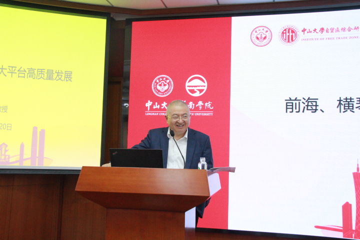 李善民院长从近五年的政府工作报告出发,围绕习近平总书记强调的“发挥各类开放平台的先行先试和引领作用,有助于推进高水平对外开放”这一主题,基于广东省委先后召开省委十三届二次全会、省委经济工作会议和省“两会”明确提出的把高质量发展作为广东现代化建设的首要任务所作出的工作部署的政策解读,为同学们细致介绍了横琴粤澳深度合作区、前海深港现代服务业合作区以及南沙面向世界的粤港澳全面合作区三大平台的建设情况。
