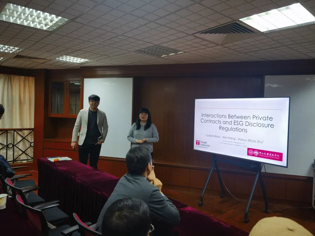 3月29日中午,首次“岭南学术午餐会”活动在岭南堂一楼林植宣会议室举行,此次活动由学院公司金融教研室承办,教研室朱效禹助理教授作为论文汇报人,为大家带来了主题为:“ESG公共管制和私有合约效果”的论文分享,分享会由学院金融学系主任戴芸副教授主持,学院经济系主任李兵副教授及学院的十多位老师参加了午餐会。