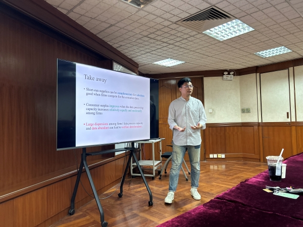 康俊卿助理教授报告了他与合作者在数字经济学方面的研究。该论文利用具有不确定需求的两期古诺模型,通过主动数据管理渠道研究短期战略供给与长期市场力量之间的关系。 论文提出企业通过短期供给来搜集有助于预测长期不确定需求的消费者数据。 为了降低长期需求的不确定性,企业会积极管理数据,以牺牲短期利润为代价来增加短期供应。因此,当公司竞争消费者数据时,替代品的短期供应呈现互补品的特征。此外,论文发现,当不同企业的数据处理能力差异不大时,适度增加短期供给,消费者剩余会增加。然而,若公司数据处理能力和数据丰富度之间存在巨大差异,基于数据的供应竞争会导致福利的恶化。