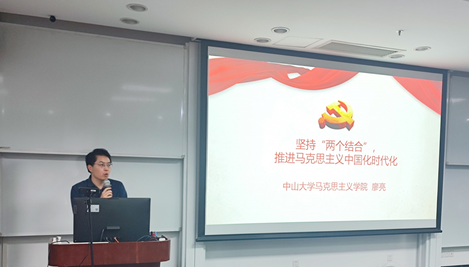本次学习在全体同学热烈的掌声中开始。廖亮博士就马克思主义中国化时代化的由来、“两个结合”的基本内涵、中国未来如何进一步推进马克思主义中国化时代化做出了详细讲解。