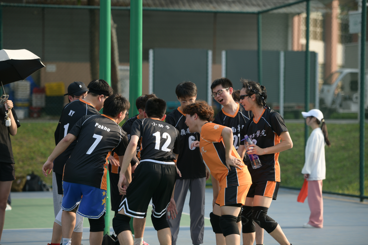 男排小组赛中大家围圈加油