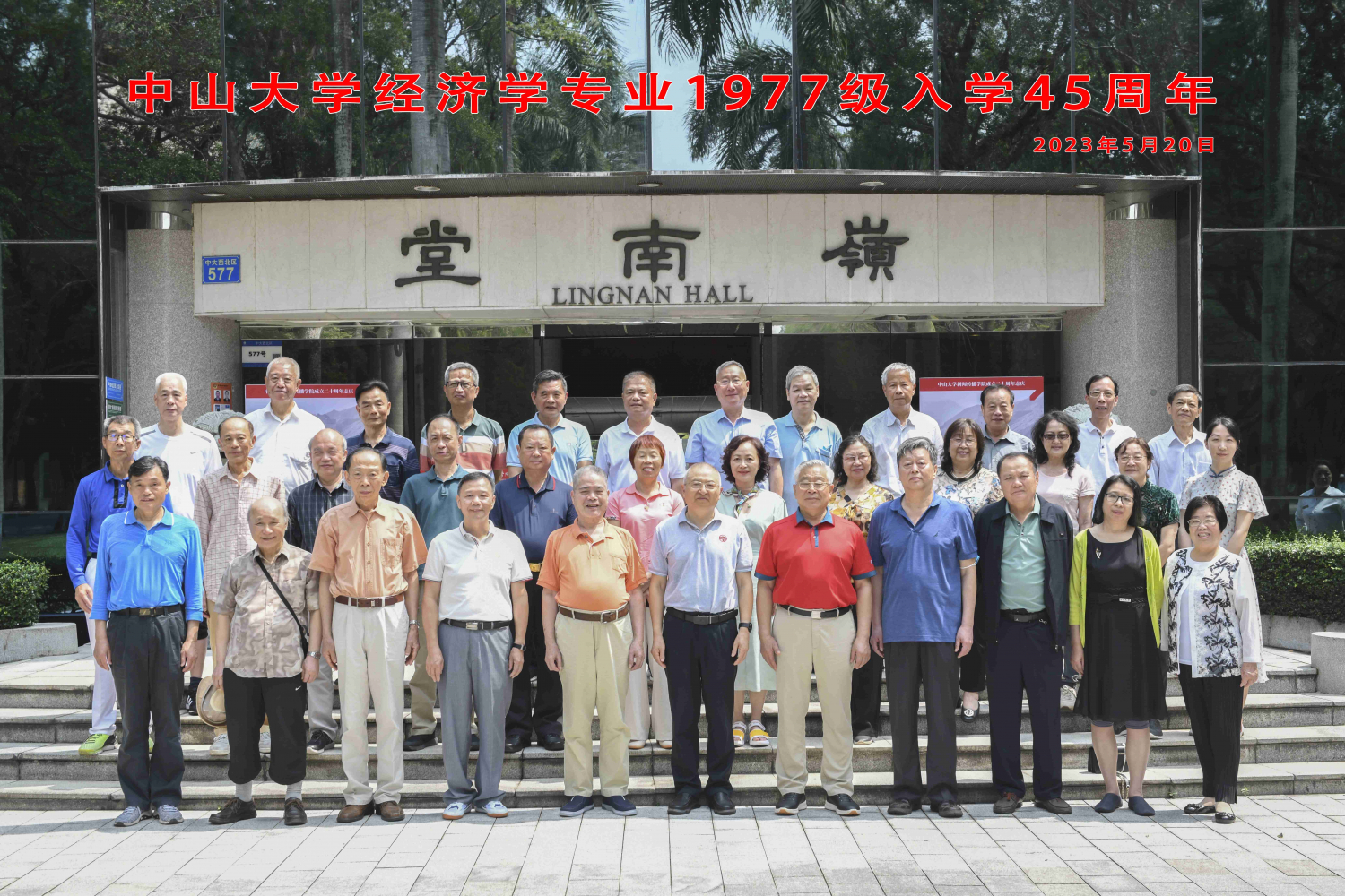 四十五年的风霜雨雪,或许洗尽了青春的铅华,但洗不去心中那份历久弥新的同学情谊。最后大家在岭南堂门前合影,留下了这份宝贵的瞬间。