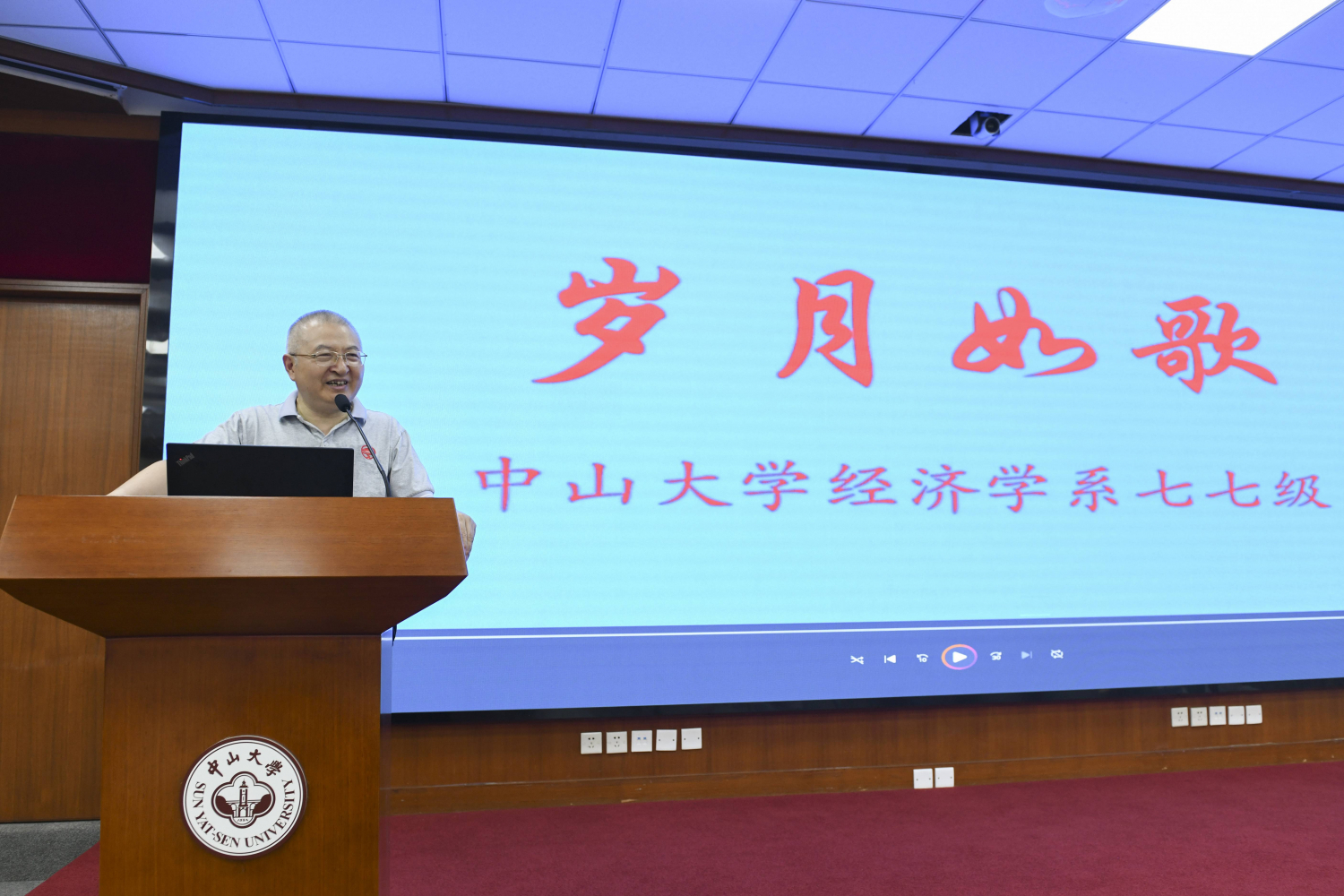 1977级入学四十五周年值年返校活动在岭南堂三楼陈荣捷讲学厅举行,应邀参加活动的有岭南学院院长李善民教授,77级昔年辅导员钟培伍老师,学院校友项目主任程锐敏老师。活动由董小麟校友主持。