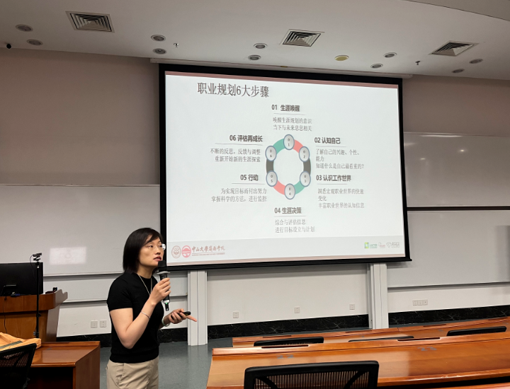 学工部于秀丽老师向研究生新生介绍了研究生职业发展的内容,希望同学们能够通过生涯唤醒、认识自己,认识工作世界、生涯决策、行动、评估再成长等6个步骤,做好自己的职业规划,更好地 “服务社会”。