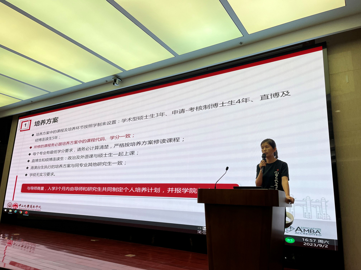 学院教务管理部、专硕教育中心的教务老师分别向全日制研究生新生介绍了博士研究生、学术型硕士研究生、专业硕士研究生的培养方案、学分要求、规章制度和相关教学资源等内容。学院对于研究生新生教学管理教育高度重视,研究制订并向学生发布了《yl9193永利集团岭南学院研究生新生入学须知》。文件就研究生在校期间的各类政策及规定的要点进行了浓缩与精简。使学生对在校期间的重要教学政策及规章制度强化记忆,一目了然。从而引导研究生新生尽快熟悉学习、科研环境,熟知学校规章制度,树立良好学术风气和学术道德。