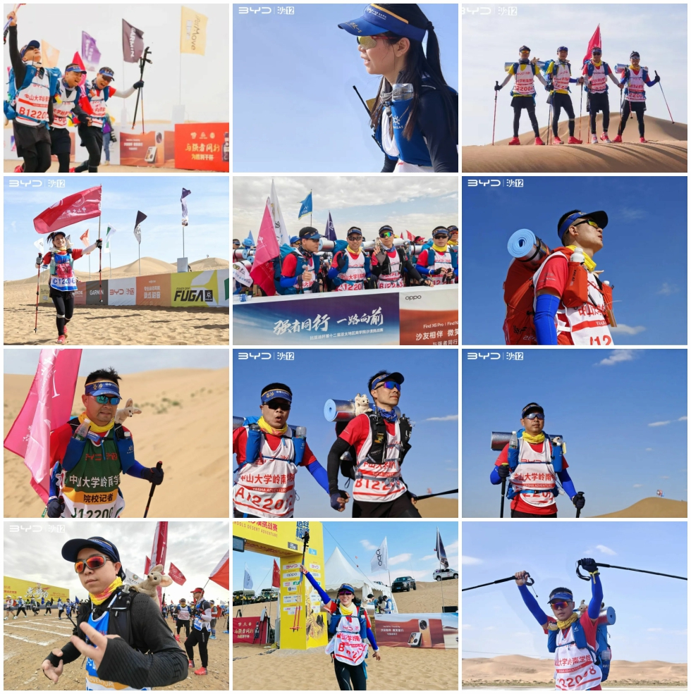 沙12的比赛过程中,AB队队员需要完成70公里的挑战,C队队员需要完成31公里的挑战同时做好后勤工作,任务十分艰巨。腾格里的昼夜温差极大,队员们要应对大漠风沙、午后烈日和入夜后的寒冷,同时也要经受三天背靠背的赛程考验。但是,沙12的队员们克服伤痛,永不言弃,相互扶持,在比赛过程中展现出了红灰儿女风雨无阻,顽强拼搏的风姿风采,最后全员坚持按时到达终点,不少队员还在这次沙12比赛中获得了组别前100名的好成绩!全体队员们都无私奉献、奋勇向前,超越极限,为亚沙之旅画上了完美的句号。