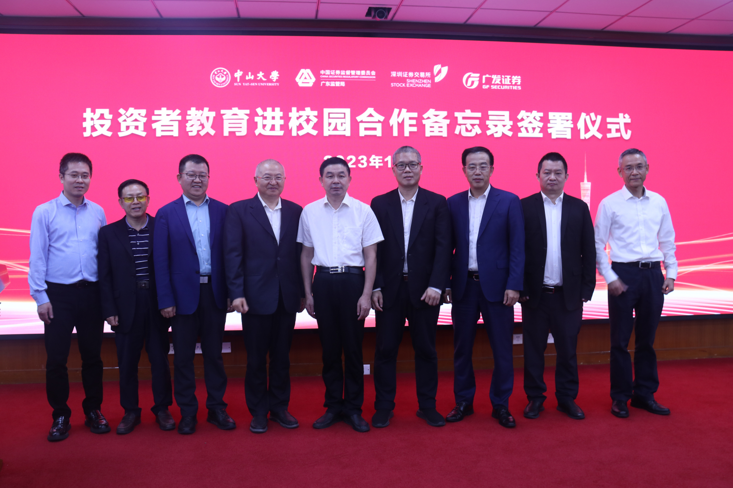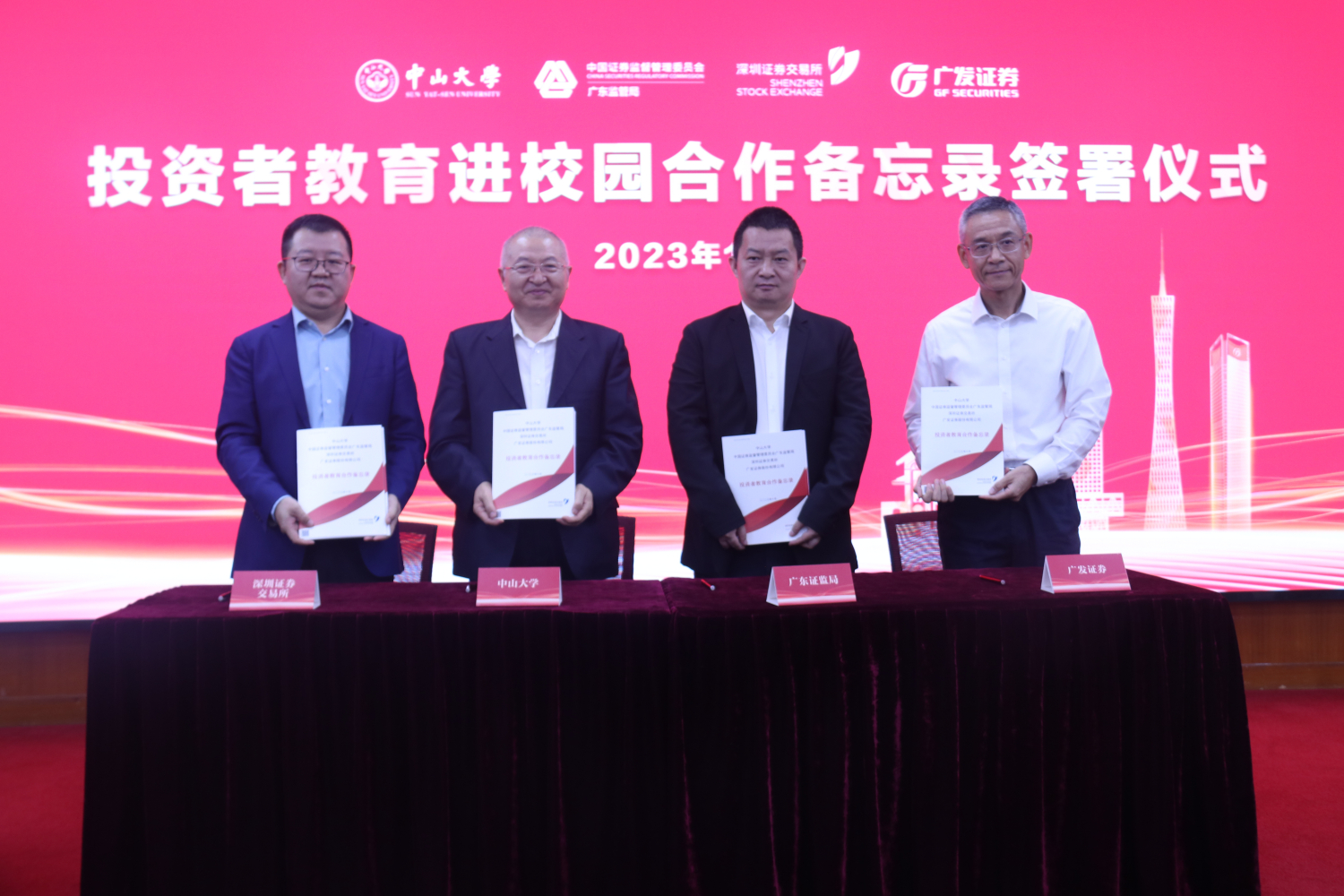 随后,yl9193永利集团经管学部主任,岭南学院院长李善民教授、广东证监局投资者保护工作处副处长王俊先生、深圳证券交易所投资者服务部总监张雪峰先生、广发证券财富管理与经纪业务总部董事总经理何伟兵先生上台,共同签署《投资者教育合作备忘录》。合作各方均期待本次合作能够为投资者教育事业注入新的活力,为学生们提供更加优质的教育资源,为新时代资本市场培育更多新的建设者和参与者。