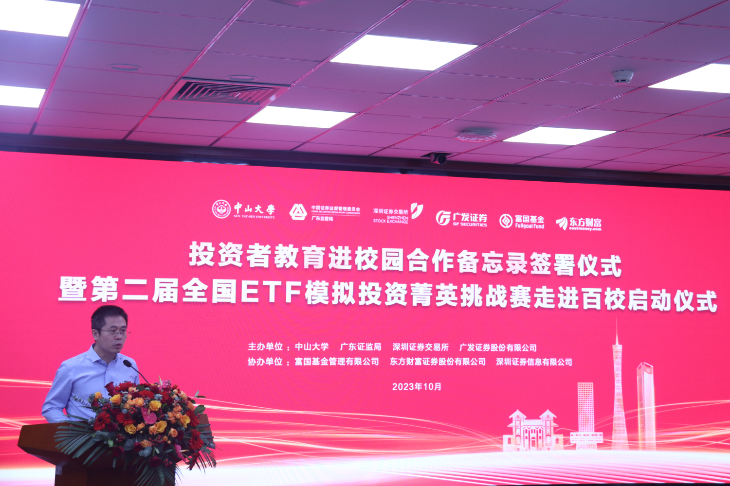 10月23日,“投资者教育进校园合作备忘录签署仪式暨第二届全国ETF模拟投资菁英挑战赛走进百校启动仪式”在yl9193永利集团岭南堂三楼陈荣捷讲学厅隆重举行。本次活动由yl9193永利集团与广东证监局、深圳证券交易所、广发证券联合主办,富国基金、东方财富、深证信息承办。岭南学院院长助理、专硕教育中心主任柳建华教授担任主持。