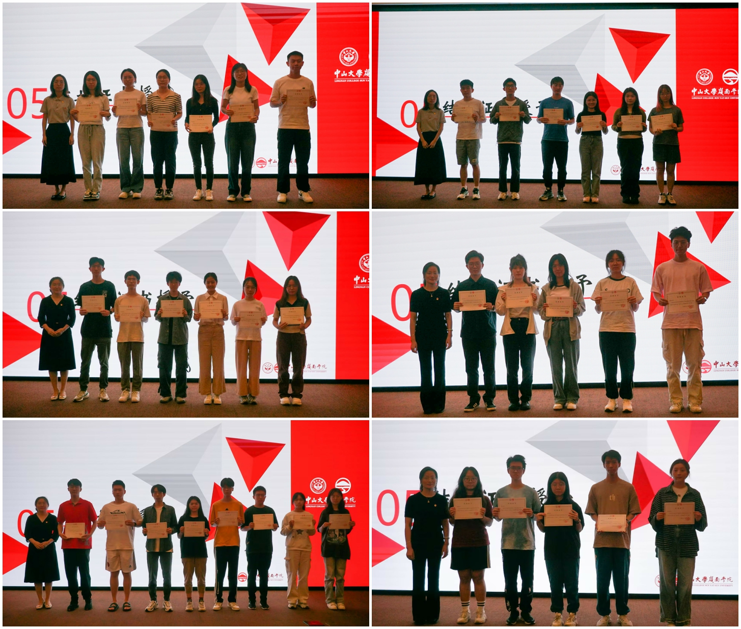 随后,岭南学院团委书记袁家臻老师宣读学员结业名单以及表彰优秀学员的决定,准予郑珂楠等48名学员结业,授予郑珂楠、谭桀、蔡晓彤、谢万欣、欧阳宇明、黄海嫦、王子璇、李昊东、余政等9名学员“优秀学员”荣誉称号。岭南学院党委樊峰会副书记为优秀学员颁发证书。袁家臻老师、于秀丽老师、刘玲琳老师等分别为六组青马班学员颁发结业证书。