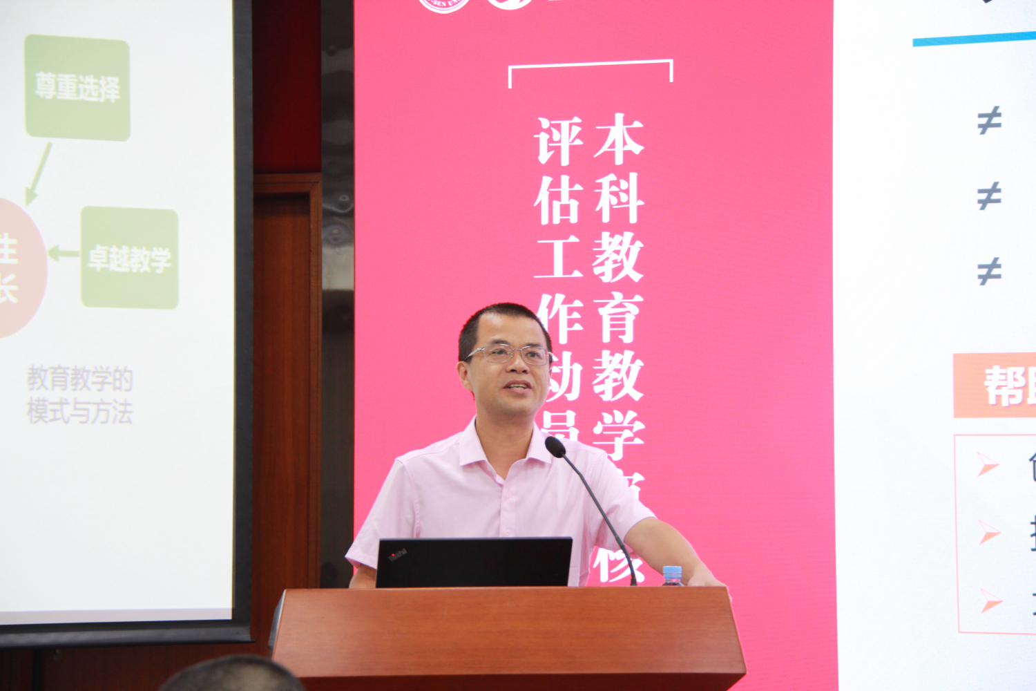 为做好迎接此次评估的高质量准备工作,我院于2023年10月31日上午在岭南堂三楼陈荣捷讲学厅面向全院教职工召开岭南学院本科教育教学审核评估工作动员会。本次会议特别邀请学校教务部主任兼教务管理处处长陈省平、学校教务部质量处(教材处)处长、教师发展中心主任张雁做专题讲座。本次会议由岭南学院党委书记黄毅主持,副院长刘彦初做动员工作布置。