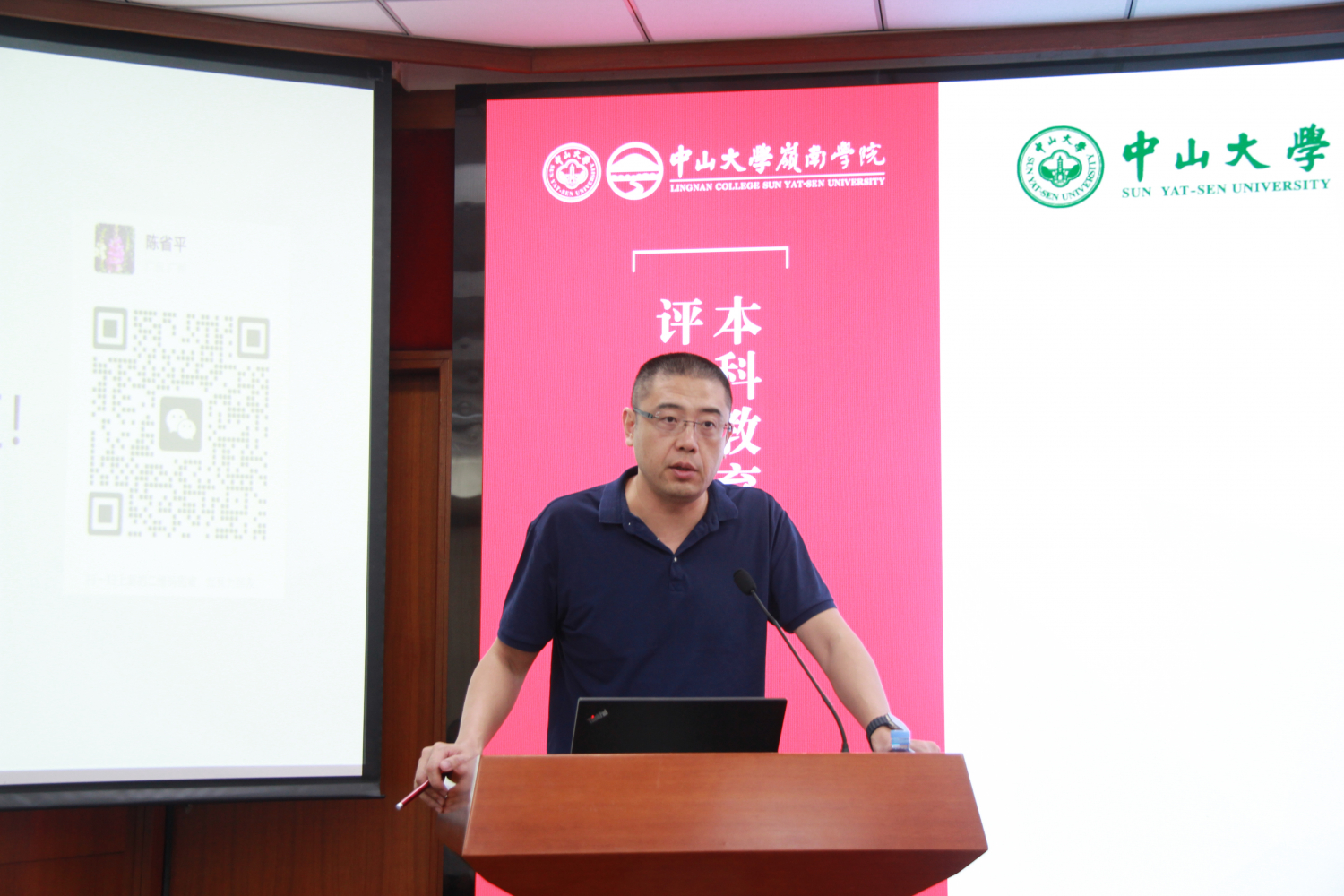 陈省平主任以《以学生成长为中心,提高人才自主培养质量》为题,围绕中大人才培养工作概况、主动学习、规范管理、卓越教学四个要点展开介绍。陈省平主任首先围绕全面贯彻习近平新时代中国特色社会主义思想与为党育人、为国育才的教育方针,详细介绍了我校“以学生成长为中心、以通专融合为路径”全面提高人才自主培养质量的人才培养理念。陈省平主任强调通识教育不等同于开设几门通识课,好的通识教育,我们需要思考在专业教育当中如何去培养学生主动学习的能力,自我学习的能力。好的专业教育也并不是简单的知识传授,如果这门专业课可以对培养学生的批判性思考、清晰表达价值判断能力有帮助,这样的专业课本身也达到了通识教育的目标。接着,陈省平主任围绕“加强基础、促进交叉、尊重选择、卓越教学”详细介绍我校人才培养的具体举措。陈省平主任还从规范教学管理出发,提出强化教师守则、规范教学检查、评价与培训、做好风险防控、确保教学条件等以保障教学平稳运行。最后,陈省平主任通过介绍一系列我校优秀的教与学改革案例,强调提升卓越教学,以学生成长为中心,让学科教育回归到“育人”的本真。