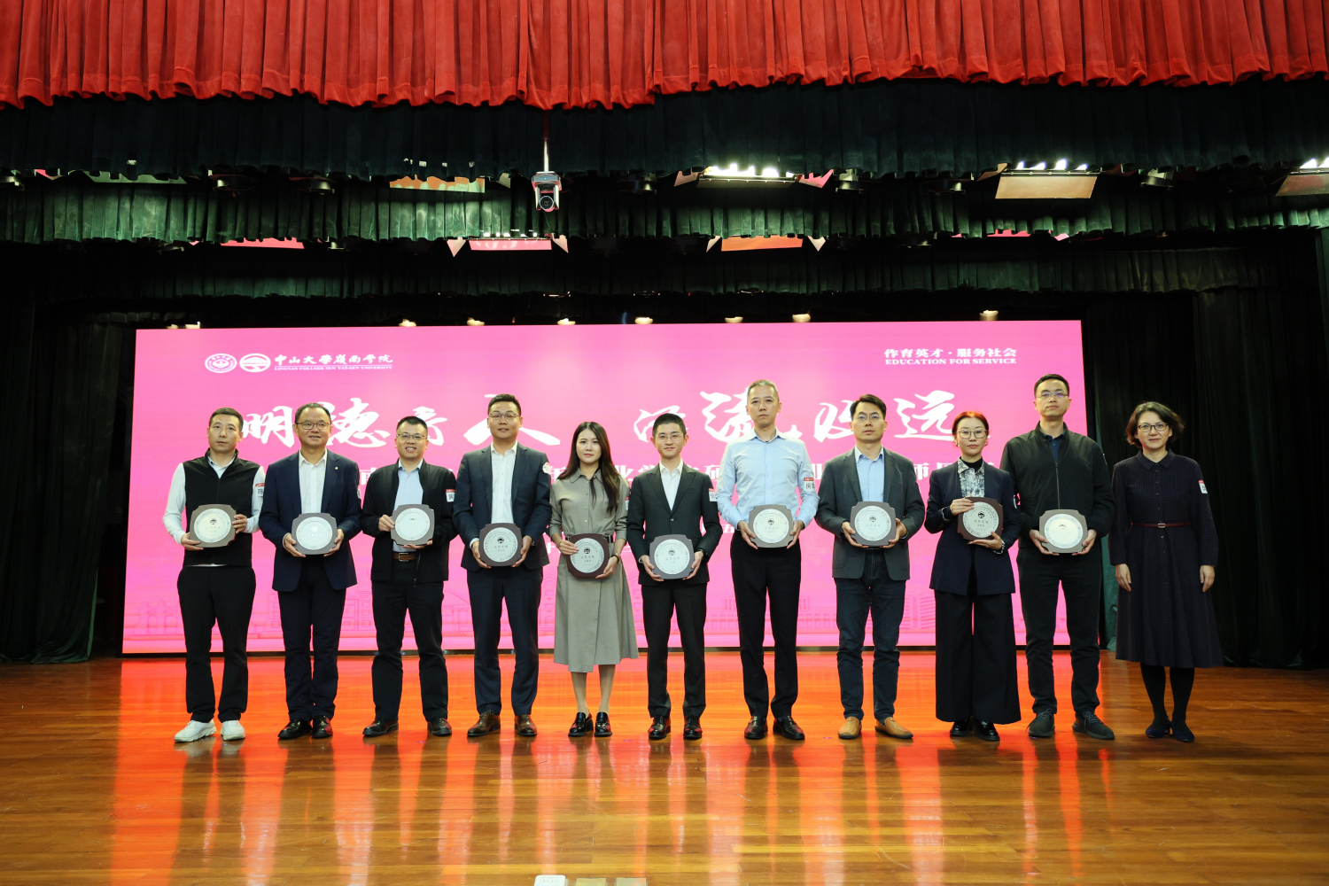 在同学们热烈的掌声中,学院党委樊峰会副书记,副院长鲁晓东教授,院长助理、专硕教育中心主任柳建华教授为出席会议的业界导师们颁发了聘书和导师铭牌。