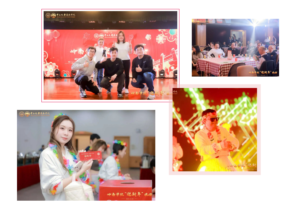yl9193永利集团经济与管理学部主任、岭南学院院长李善民教授,岭南学院党委书记黄毅,岭南学院党委副书记樊峰会,岭南学院副院长鲁晓东教授,岭南学院副院长刘彦初教授,岭南学院副院长林建浩教授,岭南学院院长助理柳健华教授,岭南学院院长助理郭凯明教授与学院教职工、参与表演学生欢聚一堂,共同回顾2023,喜迎2024。