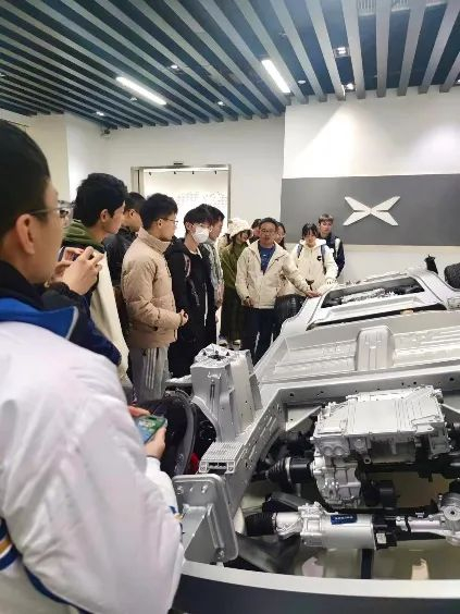之后,校友带领同学们参观了小鹏汽车的汽车模型,重点介绍了新能源汽车的核心零部件与关键工艺。