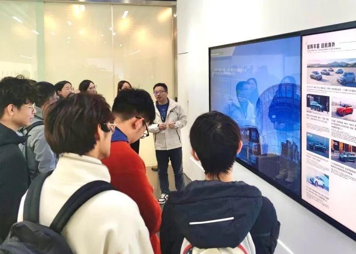 这里,校友向同学们介绍了小鹏汽车“始终以客户为中心,用科技为人类创造更便捷愉悦的出行生活”的品牌使命,致力于为消费者提供更好的出行体验。对于科技创新和品质的关注,使得小鹏汽车逐渐形成了多样化的产品矩阵、强大的自研科技能力以及成熟的制造体系。小鹏汽车的经营理念与创新精神给同学们留下了深刻的印象。