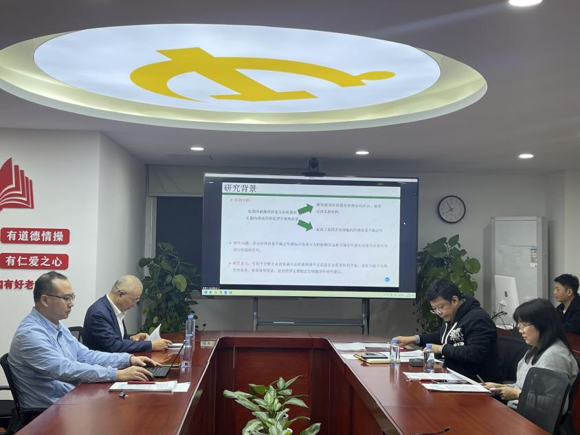 刘川钰同学分享了题为《企业不确定性感知与货币政策传导效应研究:基于企业投资行为和年报文本分析》的论文。该文章基于文本分析方法从企业管理层分析与讨论中提取企业政策不确定性感知水平来识别企业的投资意愿。在答辩过程中,老师对文献综述、计量模型设定等方面提出了建议。