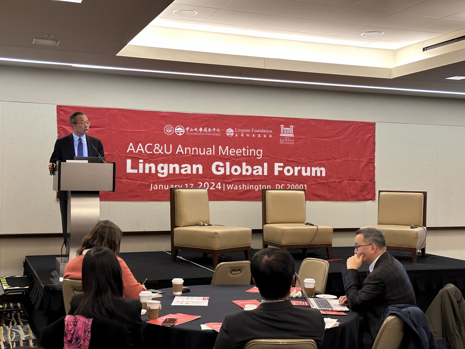 1月17日,受美国岭南基金会的邀请,岭南学院在华盛顿主办第五届岭南国际论坛。论坛邀请了全球学界与业界的嘉宾参加,探讨“人工智能与高等教育”、以及“多重危机下的全球经济”这两个当下最热门的话题。岭南国际论坛作为美国高校协会(AAC&U, American Association of Colleges and Universities)年会的一部分,吸引了美国及全球其他地区高校的校长、院长及高级行政管理人员参与及交流。