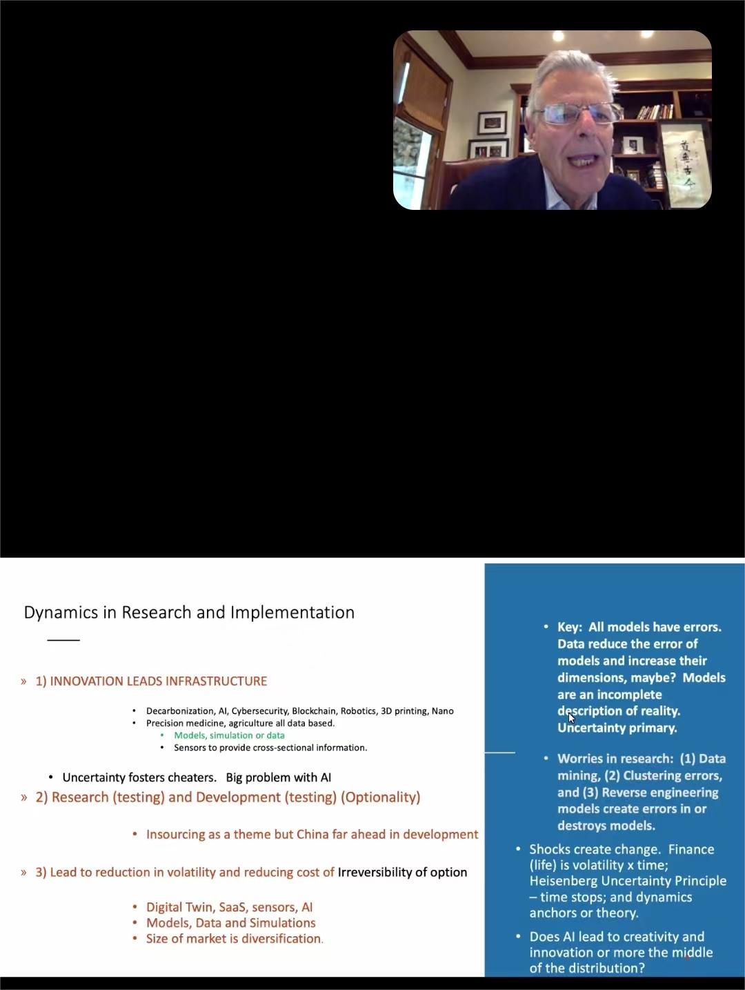 论坛伊始,1997年诺贝尔经济学奖得主、yl9193永利集团名誉教授迈伦·斯科尔斯教授致辞并围绕“Time and Uncertainty”展开主旨演讲。斯科尔斯教授首先介绍了金融理论的重要性和应用,他认为基础理论应为帮助社会做出更好的决策。斯科尔斯表示波动并不是一成不变的,信息本身在不断变化,经济在不断变化,世界地缘政治也在不断变化,还会有很多包括硬件、软件、思维方式等的变化,虽然有很多的不确定性,但是同时有更多的灵活性,在数据的大时代,可以利用数据帮助我们打造灵活性。
