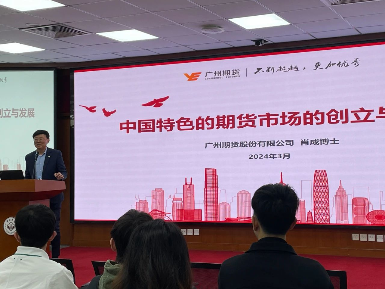 自1994年从南开大学博士毕业后进入广发证券开始,肖成博士的命运就紧紧地和我国证券期货市场绑在了一起,坚守初心30载。结合自身渊博学识、丰富履历与独特见解,肖博士立足于中国国情,分享了具有中国特色的期货市场的创立与发展,为同学们带来一场精彩纷呈、引人入胜、说理透彻的讲座,进一步启发同学们对中国特色期货市场的未来发展的深刻思考。