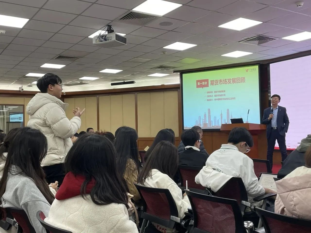在互动环节,同学们踊跃提问,就中国期货发展过程中面临的挑战、期货行业推出的“保险+期货”普惠金融实践、期货带来的负向风险效应、期货市场品种的定价权等问题积极提问。肖成博士对同学们提出的问题一一做出详细回答,刘彦初副院长也进行了补充分析。在热烈的讨论和欢愉的氛围中,本学期第一次金融高管系列讲座圆满结束。