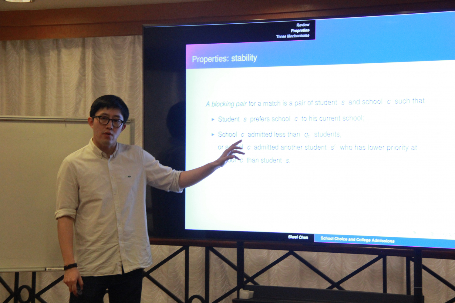 陈斯维副教授以美国的择校情况为背景,从学区、家长、学生和学校的不同角度,并将公众关注的公平、效率和激励相容三个重要的经济原则作为切入点,将其作为学校的可测试性建立数学模型,探索如何设计一个能够实现公平、有效配置且易于理解和使用的择校机制。