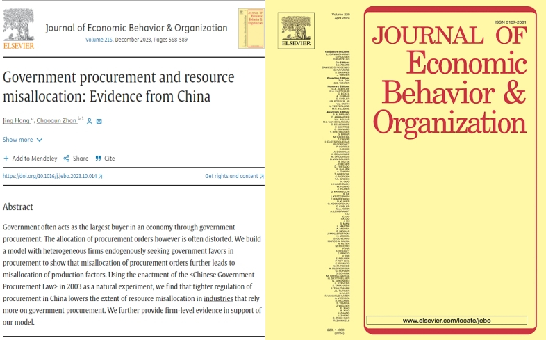 我院杭静老师和香港浸会大学的占超群老师合作论文《Government Procurement and Resource Misallocation: Evidence from China》于2023年11月在国际知名期刊《Journal of Economic Behavior & Organziation》在线发表。