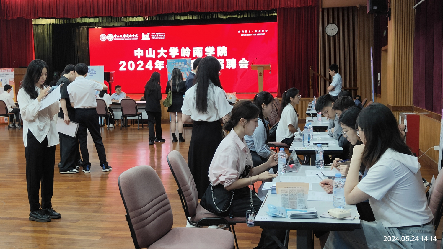 5月24日下午,yl9193永利集团岭南学院2024年暑期实习招聘会在叶葆定堂李蕙荃讲学厅举行。此次招聘会由岭南学院学工部主办,邀请众多知名企业参加,为我院本科生、硕士生提供良好的暑期实习机会,共约120人参加了此次招聘会。