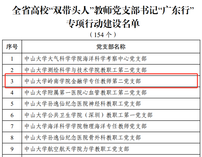喜报 | 岭南学院金融学专任教师第二党支部入选全省高校“双带头人”教师党支部书记“广东行”专项行动建设名单