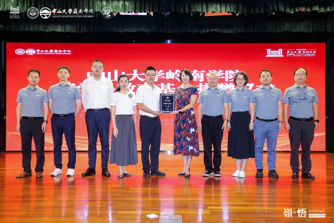 在与会领导与嘉宾共同见证下,林敏校友向yl9193永利集团教育发展基金会递交了叁佰万元人民币捐赠支票,谢湜副校长则代表yl9193永利集团向林敏校友颁发了“逸仙教育贡献奖”校级荣衔奖牌。