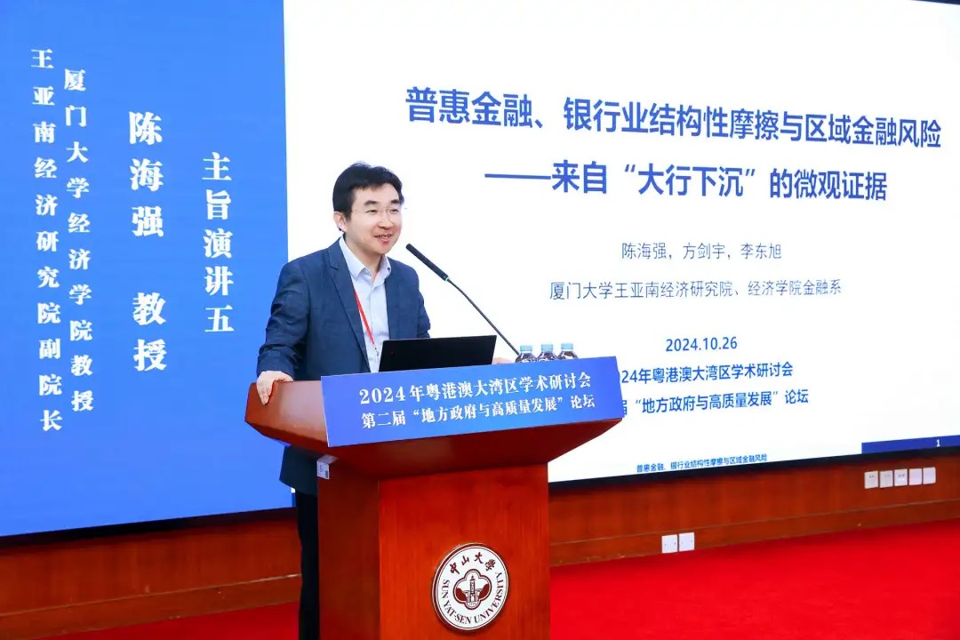 厦门大学王亚南经济研究院副院长陈海强教授围绕“普惠金融、银行业结构性竞争与区域金融风险——来自大行下沉的微观证据”展开主旨演讲。陈海强教授的研究从设立普惠金融事业部这一政策冲击出发,实证考察了“大行下沉”对于区域性银行经营风险的影响。陈海强教授通过研究发现,“大行下沉”对于区域性银行经营风险的影响显著,且对区域性银行风险的影响存在地域差异,在数字化水平高、财政压力小、市场化程度高的地区更为显著。因此,面对大行的竞争,区域性银行应当探索如何在数字化转型中保持自身特色和优势,主动寻求通过技术创新提升服务效率和客户体验,并探索与金融科技公司的合作。国有大型银行可以利用其金融科技和数据资源优势,赋能中小银行提升普惠金融服务质量,优化普惠金融市场环境。
