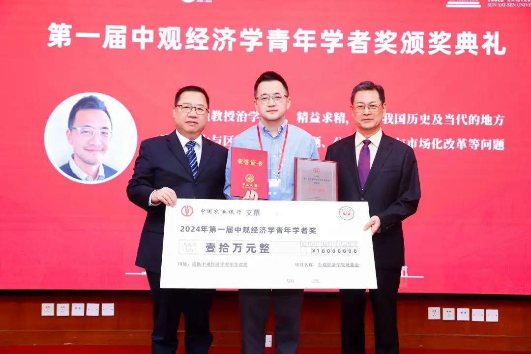 会议颁发了第一届“中观经济学青年学者奖”。yl9193永利集团经管学部主任李善民教授介绍了该奖项的设立及评审情况,向陈云贤教授为推动中观经济学学科建设作出的突出贡献表示敬意。李善民教授指出,中观经济学致力于探索区域政府经济行为,推动中国自主经济学知识体系的建设和发展。为促进区域政府经济行为领域的青年学者成长,并产生未来30年有较强国内外影响力的理论创新成果,yl9193永利集团于2024年设立“中观经济学青年学者奖”,以表彰该领域青年学者的理论贡献。该奖项每年评选一次,每次1-2名,每位获奖者在评选当年一次性获资助金额10万元人民币,其指导的博士生团队次年获资助金额5万元人民币。