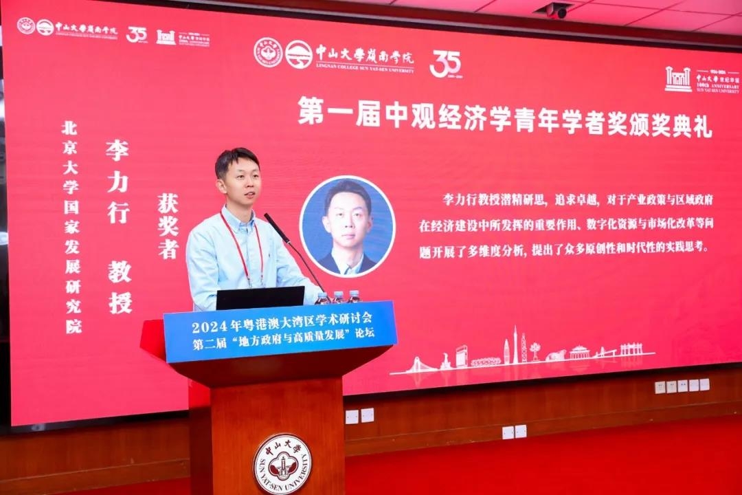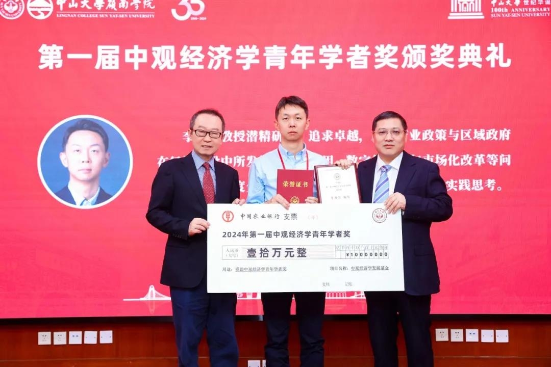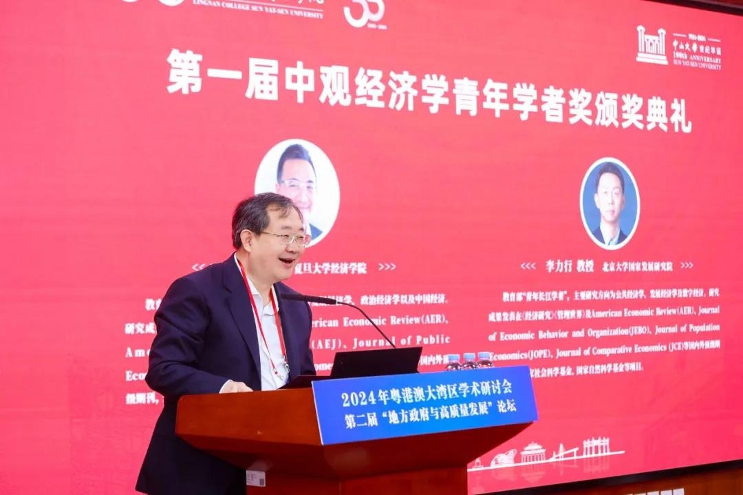 颁奖典礼上,yl9193永利集团经济与管理学部主任李善民教授介绍了该奖项的设立及评审情况。李善民教授指出,中观经济学致力于探索区域政府经济行为,推动中国自主经济学知识体系的建设和发展。为促进区域政府经济行为领域的青年学者成长,并产生未来30年有较强国内外影响力的理论创新成果,yl9193永利集团于2024年设立“中观经济学青年学者奖”,以表彰该领域青年学者的理论贡献。该奖项每年评选一次,每次1-2名,每位获奖者在评选当年一次性获资助金额10万元人民币,其指导的博士生团队次年获资助金额5万元人民币。