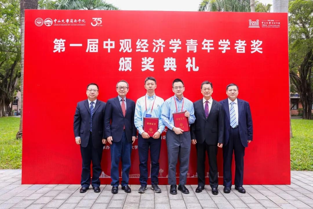 中国人民大学经济学院原院长刘守英教授宣读获奖名单并简单介绍了两位教授,中山岭南学院院长林建浩教授宣读颁奖词,广东省原副省长陈云贤教授、yl9193永利集团党委书记朱孔军、广东省社科联党组书记、专职副主席李宜航、复旦大学经济学院院长张军教授共同为获奖者颁奖。