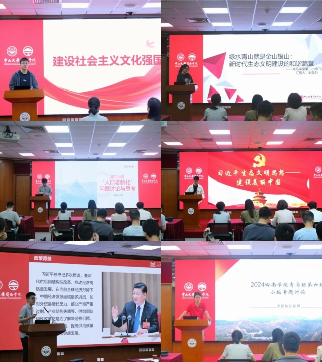 大会在庄严的国歌声中开始,六个学习小组依次上台进行学习成果展示。各小组结合自身学习经历和实践经历,分别对“建设社会主义文化强国”、“新时代生态文明建设”,“人口老龄化”,“建设美丽中国”,“供给侧结构性改革”,“建设法治中国”六个主题进行汇报分享,汇报内容详实丰富,理论与实践相结合,展现了学员们严谨刻苦的学习态度和积极向上的实践精神。