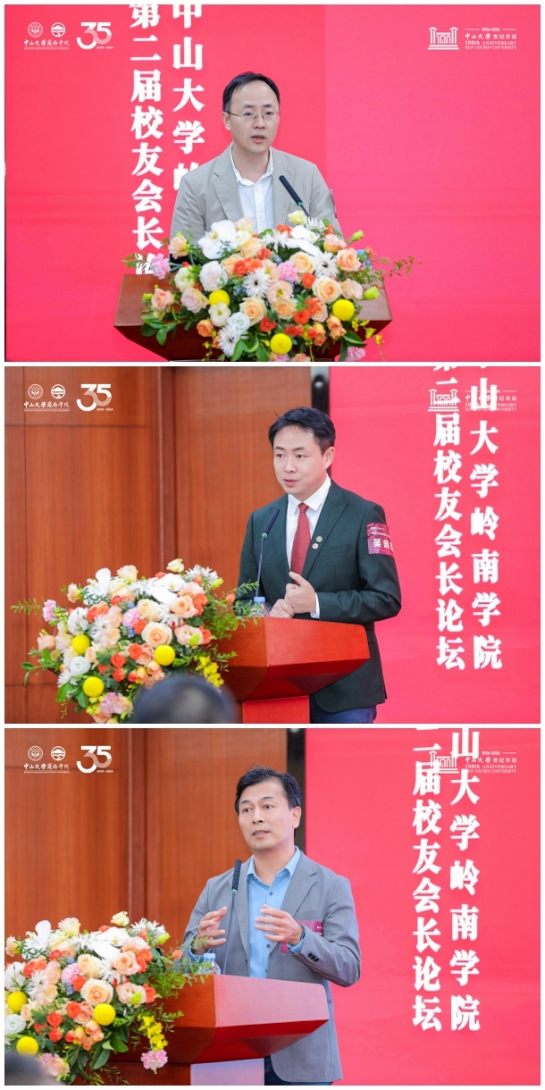 学院的校友工作,一直以来都得到了各项目和各地方校友会的大力支持,各校友分会带动广大岭南校友和各界人士,热心支持教育事业,为岭南教育贡献了不可磨灭的力量。大会邀请了三位分会代表做了分享。潮汕校友会会长黄宏杰学长、EMBA同学会联席秘书长吴晓亮学长、CHEMBA校友会会长梁旭朗学长分享了校友工作经验及过去一年开展的亮点活动,表达了作为岭南校友,要不忘岭南院训,以实际行动回馈学院和社会的愿望。最后,校友们对下一年校友会工作的开展提出了一些宝贵的建议。