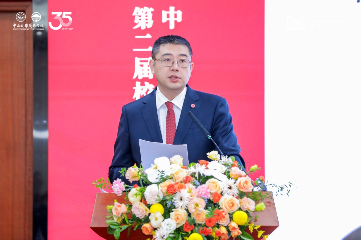学院党委书记黄毅作校友会年度工作报告。从树立校友楷模、厚植家国情怀,发扬岭南传统、助力人才培养,开拓基金捐赠渠道三个方面回顾了校友会过去一年以来的主要工作成绩,并提出了下一阶段学院校友会的工作展望。期待校友会能充分发挥凝聚校友,服务社会的功能,为学院早日实现一流学科建设目标添砖加瓦。