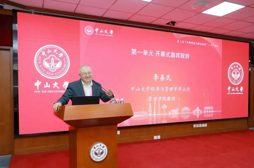 yl9193永利集团经济与管理学部主任李善民教授出席开幕式并致辞。李善民教授指出,此次论坛着眼于人工智能技术在并购投资领域的应用。当今世界AI技术与财务预测、成本控制、风险评估工作的结合,为企业的投资决策带来了前所未有的机遇与挑战。希望在座专家和同学积极参与交流与分享,启发思想,为未来的学术研究与行业发展提供更多的创新思路,为学科发展和学术研究打造优秀的交流平台,推动股权投资与并购重组研究迈上新台阶。