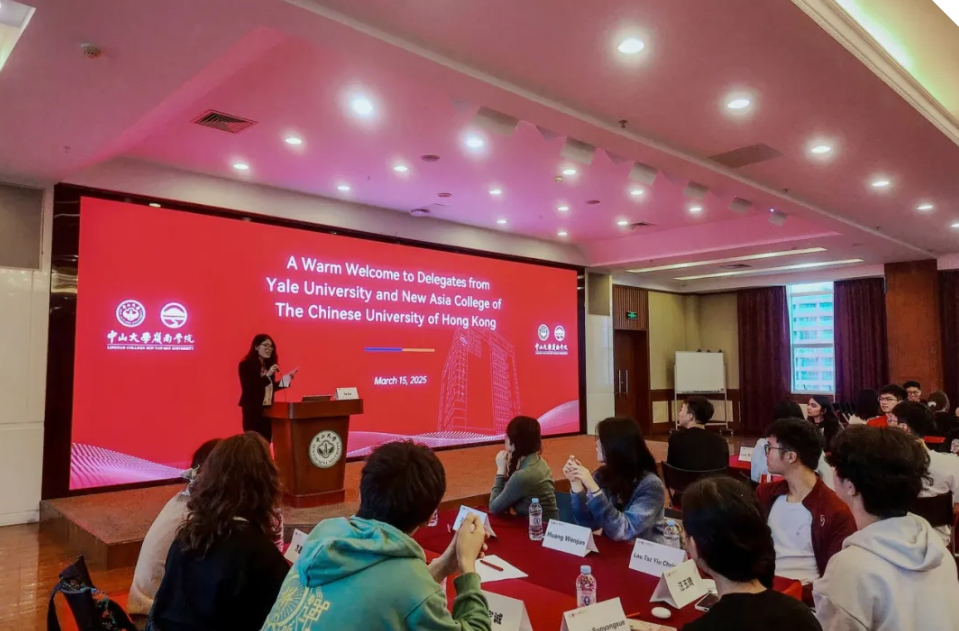 2025年3月15日,耶鲁大学和香港中文大学新亚学院师生代表团到访我院,与我院学子在MBA大楼10楼讲学厅开展交流互动。会议由岭南学院国际项目梁庚主持。