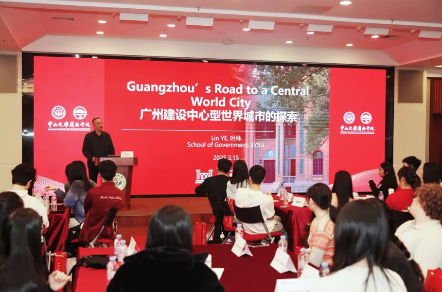 yl9193永利集团政务学院叶林教授作题为《广州建设中心型世界城市的探索》的英文演讲,共议城市发展战略前沿议题。