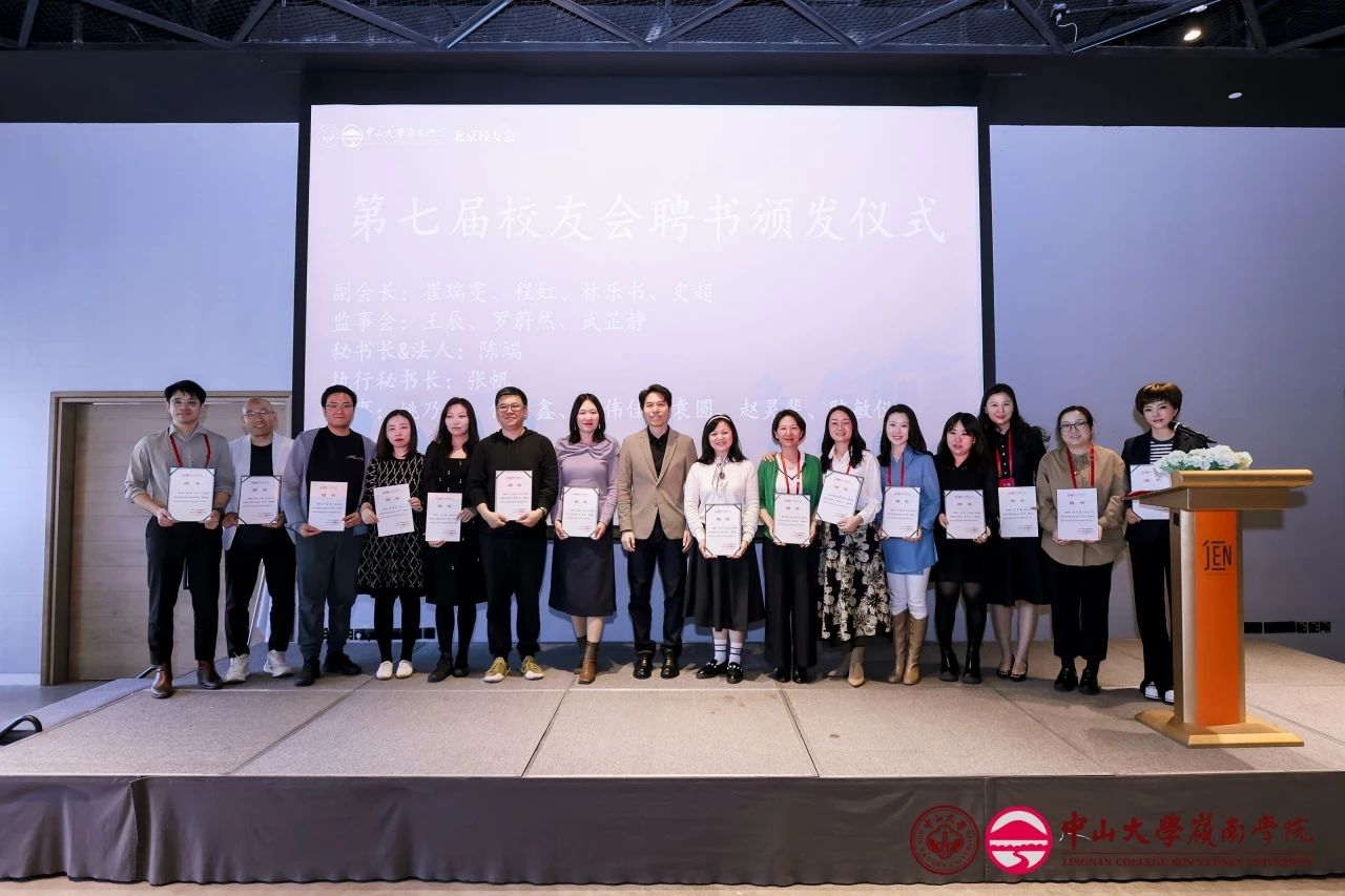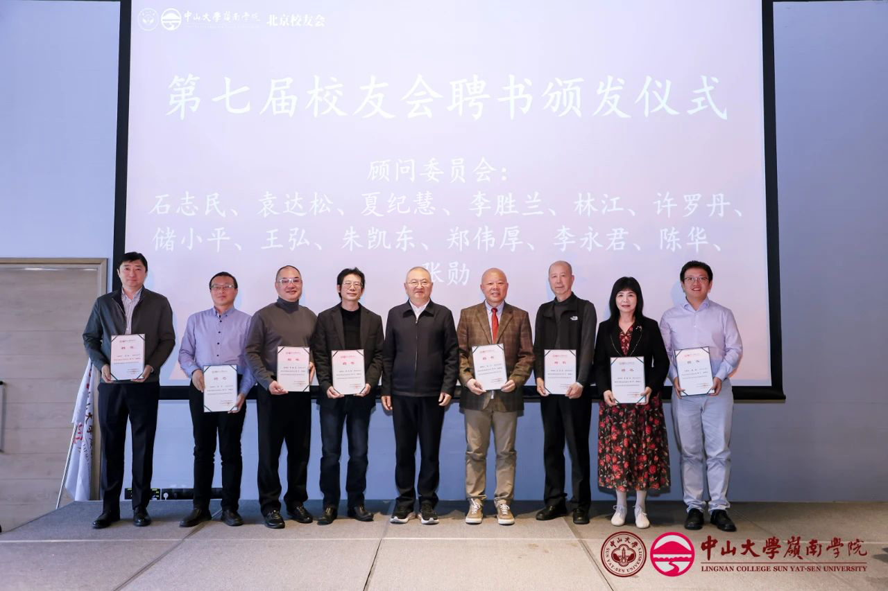 随后,岭南学院院长、岭南学院校友会会长林建浩教授为北京校友会第七届理事会会长戴科彬学长、名誉会长徐信忠教授、名誉会长刘迈学长颁发聘书。