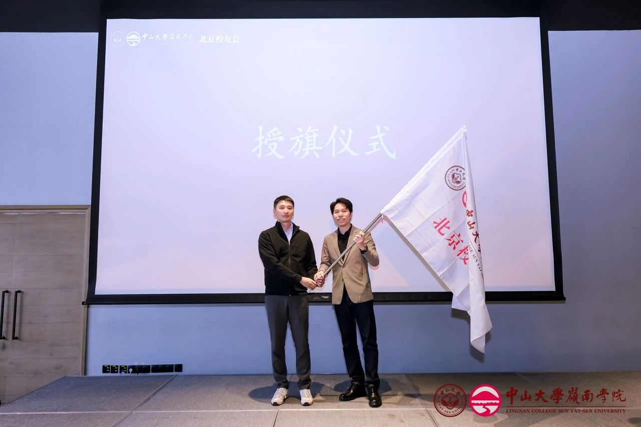 林建浩教授代表学院校友会为北京校友会授旗,授旗仪式不仅象征着北京校友会第七届理事会的正式成立,也承载着北京校友会全体成员对未来的期许和责任。薪火相传,传递的是岭南精神,更是校友之间不断的接力棒。旗帜飘扬,象征传承;步履铿锵,迈向未来!