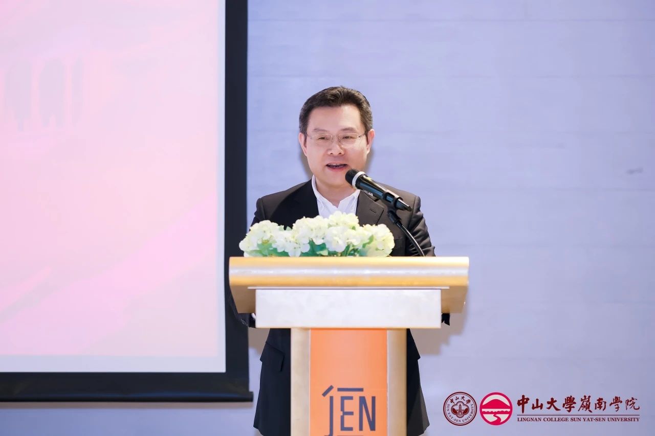 学院99级国金本科校友、同道猎聘集团董事会主席兼首席执行官、北京校友会新任会长戴科彬学长首先深情回忆了自己在岭南的求学时光,学生会主席的经历和学院各类国际项目的接触开启了他外企职业生涯的重要篇章,“作育英才,服务社会”的院训宗旨也深深影响了他迈出创业的步伐,坚定自己立志为中国民营企业服务的使命。而在谈及接棒学院北京校友会会长一职的初心时,一方面是院校领导的重视和殷殷嘱托,另一方面是林建浩院长对学院发展建设的战略眼光和宏伟蓝图点燃了自己的创业激情,让自己最终下定决心和一群优秀的岭南人一起携手,全面拥抱 AI 时代,开启北京校友会新的篇章。