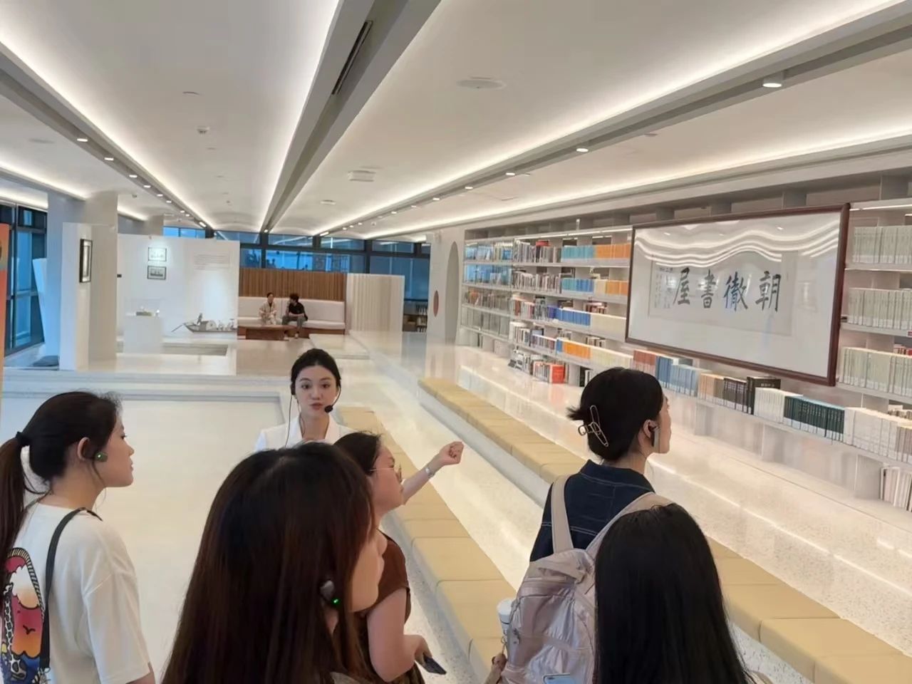 紧接着,同学们还参观了充满人文气息的朝彻书屋,现场设有好物船、海角天涯雕像、咖啡吧及报刊阅览区。而在健身房区域,从沿江跑步机到全息训练区、普拉提室、攀岩活动区,唯品会用细致入微的设计,处处呈现出“工作与生活平衡共生”的企业理念。