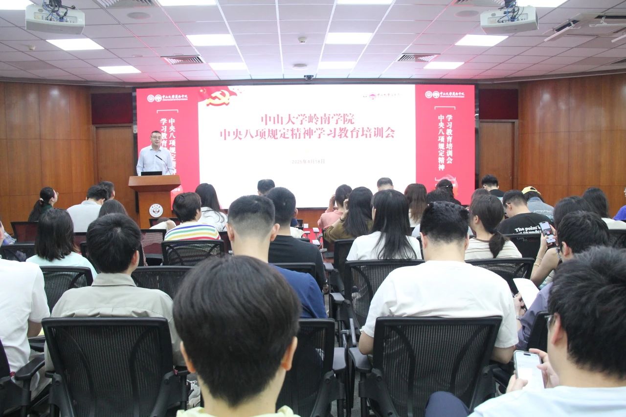 为深入贯彻党中央关于全面从严治党的战略部署,强化党员干部纪律作风建设,4月18日,岭南学院党委在岭南堂三楼陈荣捷讲学厅召开2025年第6次党委理论学习中心组(扩大)会议,开展深入贯彻中央八项规定精神学习教育培训。党委理论学习中心组成员、全体教职工及学生党员代表共同参与。此次会议由学院党委书记黄毅主持。
