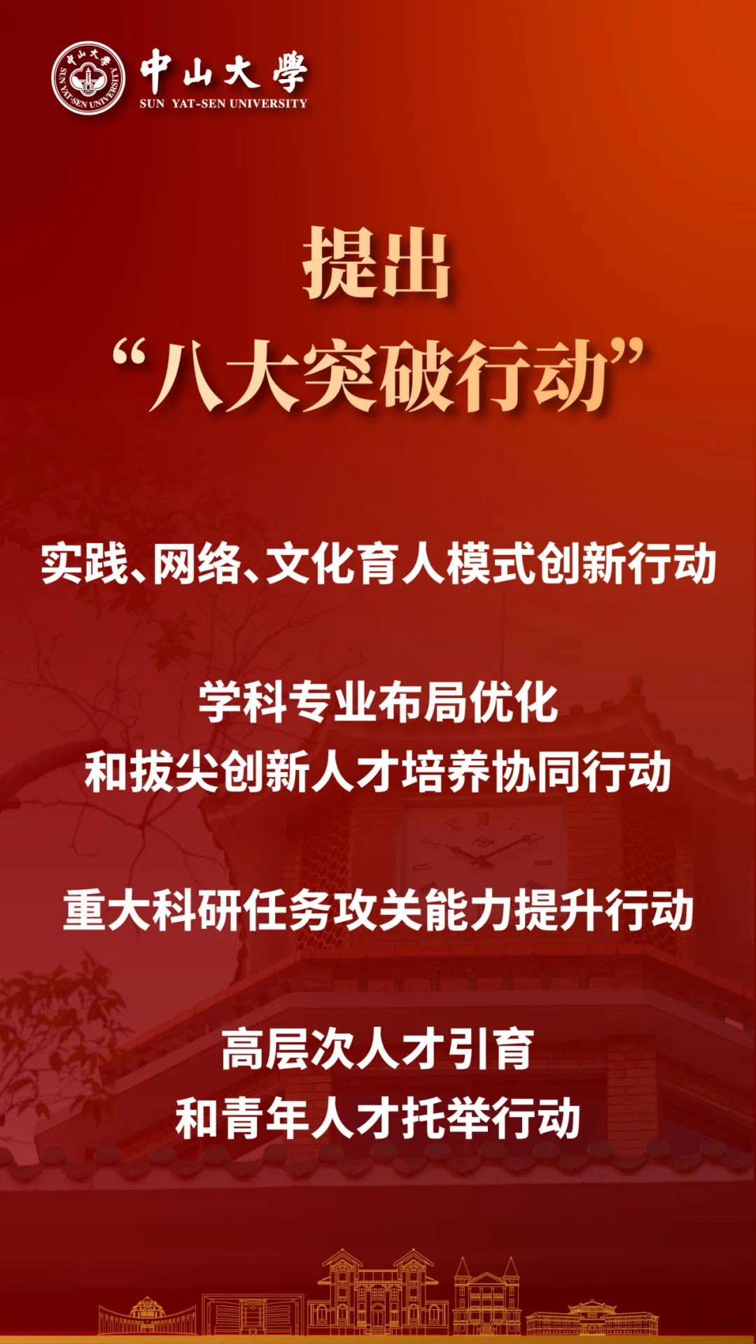 通过深入调研、召开各学科发展座谈会等形式,学校进一步明确实施“八大战略”、并提出“八大突破行动”。“八大战略”是围绕学校事业发展的重点领域进行的系统布局,“八大突破行动”则针对每个重点领域的突出短板和痛点,提出需要下大气力攻坚克难的重中之重。面向“十五五”时期,学校将大力推进改革,注重发挥突破行动的牵引作用,增强针对性,明确切入点,以点带面推进“八大战略”落实,加快高质量内涵式发展,为奋进世界一流大学前列奠定坚实基础。